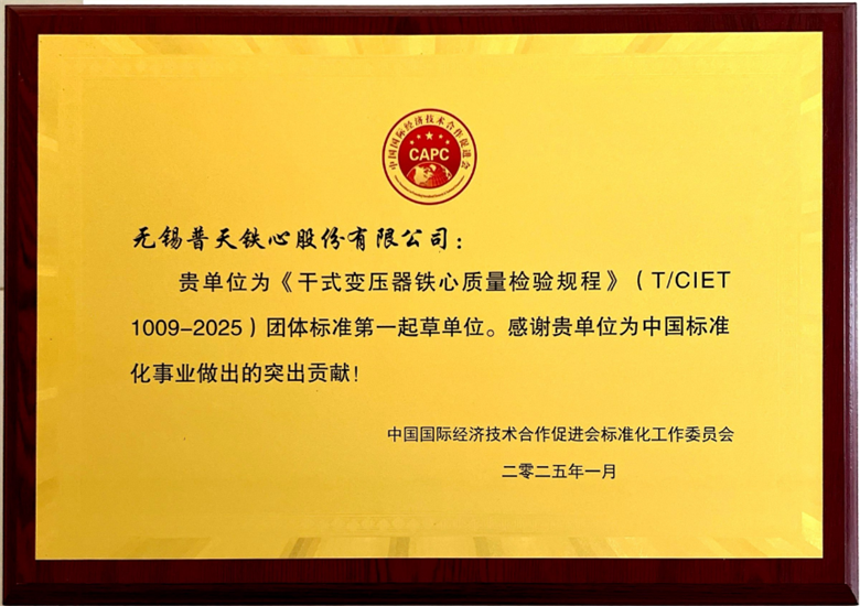近日,普天铁心(PTTX)作为第一起草单位,主导起草的团标《干式变压器铁心质量检验规程》(T/CIET 1009-2025)经中国国际经济技术合作促进会标准化工作委员会正式归口发布。该标准的出台将推动行业更加规范化、标准化,为企业创新发展和产业可持续发展注入新动能。
